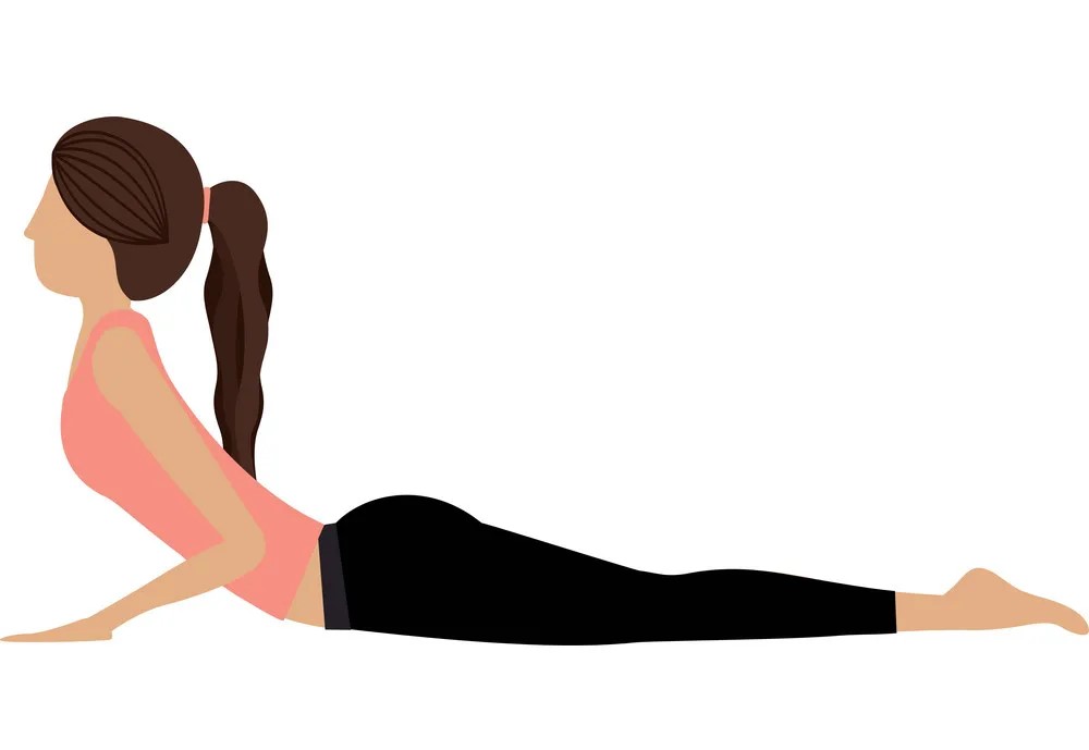 Cobra Pose: Lie face down with your legs straight, feet together, and hands under your shoulders. Use your hands to push yourself up and lift your head and shoulders. Take a deep breath. Hold this position for 30 to 60 seconds as long as you feel comfortable. Then return to the original position and take a deep breath. When you exhale, your stomach contracts and softens. If you’re having trouble breathing deep in your belly, you may have yawned and need some rest. Breathe normally and repeat 2 to 3 times