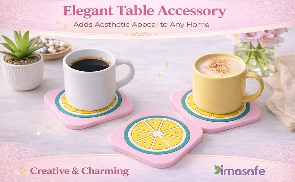 • Premium Silicone Material – Imasafe table coasters are made from high-quality durable silicone that is flexible, long-lasting, and safe for everyday use. Designed to handle both hot and cold drinks without losing shape.