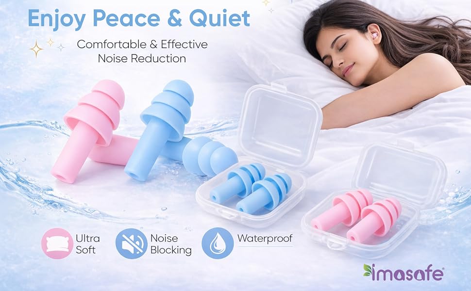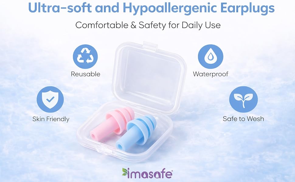 - Advanced Noise Reduction for Peaceful Sleep & Better Focus – Experience a quieter environment with Imasafe Reusable Silicone Earplugs, designed to effectively reduce unwanted noise such as snoring, traffic, construction, and loud surroundings. Perfect for improving sleep quality, enhancing concentration during work or study, and providing a calm, distraction-free experience whether at home or while traveling.